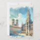 Esta postal presenta un retrato acuático de Marienplatz en Munich, Alemania.