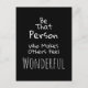 "Sé esa persona que hace que otros se sientan maravillosos" Postcard negro con tipografía gris claro.