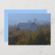 En el medio de la huerta, justo al final de la cosecha con las hojas que comienzan a girar, un granero se asoma a los árboles. También está disponible el sello de correo.