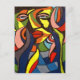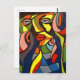 Una postal personalizado que muestra un colorido cuadro de arte africano en rojo, amarillo, verde, negro y coral.