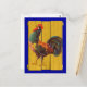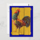 Un colorido gallo de crowing de una vintage obra de arte de la etiqueta del cajón de la cocina sobre un fondo falso de madera. Haga clic en Personalizar para agregar su nombre o mensaje, e incluso guarde el diseño para más adelante.