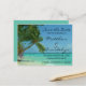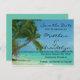 Este diseño es una pintura de acuarela de una escena de playa con palmeras, un arbusto florido y el océano en hermosos tonos de azul. Personalice esta tarjeta postal con la información de su próxima boda. La parte trasera tiene espacio para más detalles. El color de fondo es un verde espuma de mar, puede cambiar el color o eliminarlo haciendo clic en el botón Personalizar. Luego elija Editar, Fondo. Aparecerá una paleta de colores. Una vez que haya elegido otro color, debería ver los cambios inmediatamente. Para guardar los cambios, haga clic en Listo.
