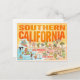 Luminosa y encantadora escena - una divertida vista de mapa personalizado del sur de California - encantadores personajes disfrutan del cálido sol de California mostrando Los Ángeles, San Diego, Anaheim, Palm Springs - Parque Estatal Anza Borrego Desert y Parque Nacional Joshua Tree, así como las ciudades fronterizas de Tijuana, Tecate y Mexicali en México.