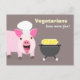 Un cerdo rosado está asando un mazorca de maíz. El mensaje dice que los vegetarianos se divierten más, pero personalizar su mensaje.