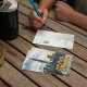 Esta postal presenta un retrato acuático de Seúl, Corea.