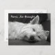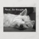 Estas son hermosas postales de perro lindas Westie (West Highland White) Terrier. La imagen muestra a un hermoso perro Westie durmiendo rápidamente con la frase 'Paws.. para el pensamiento' en la esquina superior izquierda. Genial enviar para cualquier ocasión.