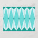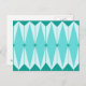 Esta postal de diamantes geométricos y estelares tiene todo el encanto kitsch de algo kitsch y encantador. El diseño de inspiración vintage presenta un fondo azul turquesa, modesto, con hexágonos de color azul claro, alargados, recubiertos de diamantes turquesa y estallidos de color azul pavo real. ¡Es un caleidoscopio de bondad retro! Este diseño de estilo de Palm Spring de los años 50 y 60 parece estar en casa en un moderno cartel de motel de mediados de siglo o en la casa de su familia clásica de televisión favorita.