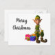 El elfo de Santa se toma un descanso después de envolver regalos. Personalizar cambiando el color de fondo.