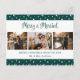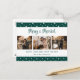 Personalizado boda de fotografía verde invitación postales de vacaciones con fondo verde estrellado con 3 fotos en el centro y un hermoso título de escritura con letras a mano arriba. Personaliza fácilmente esta postal de vacaciones verdes con tus imágenes, mensajes y el nombre de tu familia. También puede personalizar el tipo de letra y cambiar el color del texto y del fondo.