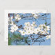 Esta postal contiene las flores blancas del Árbol Dogwood, (Cornus florida), contra un cielo azul. Árbol estatal de Misuri. Árbol estatal de Virginia y flor estatal. Flor estatal de Carolina del Norte. Simbólicamente, la flor de Dogwood a menudo representa el amor sin disminuir por la adversidad, y la durabilidad. En el cristianismo, a menudo se lo considera un símbolo de la crucifixión.