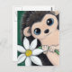 Postal caprichoso y caprichoso. Presenta una pintura de un erizo de ojos azules que sostiene una flor blanca de estilo margarita. Creada a partir de obras de arte originales © Lisa Marie Robinson. Todos Los Derechos Reservados.