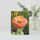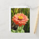 Esta postal de bonito contiene una fotografía detallada de una flor de la naranja Zinnia bonito. La fotografía fue tomada con macrofotografía y muestra la delicada belleza de los pétalos naranjas y el centro amarillo de esta hermosa flor.