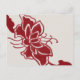Postcard con mi acuarela digital original de una flor de loto rojo bonito contra un fondo de tela beige.