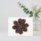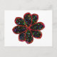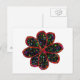 Esta divertida postal cuenta con una flor negra con un contorno rojo lleno de patrones multicolores que hacen que la flor parezca reluciente. La imagen fue creada con diseño gráfico y es a la vez hermosa y delicada.