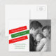 Moda y la moderna tarjeta postal de fotos de vacaciones de inclinación moderna con rayas rojas y verdes montadas en ángulo. Esta carta dulce y moderna es perfecta para los deseos de amigos y familiares. Fácil de personalizar, añada sus propios saludos y la foto familiar de su elección. Haga clic en "Personalizar" para encontrar más opciones de personalización.