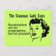 La Grammar Lady dice: ¡los apóstrofes son para los posesivos, no para los plurales! La Grammar Lady quiere que recuerden que si solo están pluralizando, ¡no agreguen el apóstrofe! Diseño sencillo de un solo color con texto y cara.