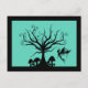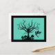 Envía un saludo espeluznante con esta célebre postal de hadas. El diseño de la silueta negra y verde azulada representa a un pequeño hada volando cerca de un árbol con ramas onduladas y onduladas. Pequeñas taburetes de diferentes tamaños crecen por debajo del árbol. El diseño está enmarcado por un borde negro. Un regalo perfecto para cualquier amante de Halloween, hadas o fantasías. Personalizar y/o personalización del diseño con su propio texto.