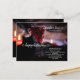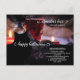 Postal de receta con un cóctel a la luz de las velas con gato negro, araña y gorra de brujas. Genial para una celebración de Halloween.
