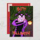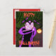 ¡Mirad profundamente en mis ojos! Un giro fresco en un monstruo clásico compone esta divertida postal de Halloween. Personalizable para que pueda agregar su propio texto y cambiar el color de fondo. ¡Muestra tu espíritu de Halloween con este divertido diseño!
