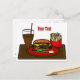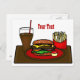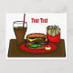 Un ilustracion gráfico de una bandeja de hamburguesa en una variedad de productos. Añade tu texto para un producto personal único. Los colores hexadecimales utilizados para el texto o fondo son (rojo B80000), (marrón claro 57380D) y (marrón oscuro 472B00). Obra de arte original: Copyright Charmaine Paulson