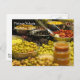 Tomé esta foto de un quiosco de olivos en el famoso mercado Mahane Yehuda en Jerusalén, Israel, mientras visitaba con un amigo. Estas aceitunas provienen directamente de los productores de aceitunas. Hay que destacar que también hay pimientos encurtidos y amba, un popular condimento de mango. El título y la descripción de la parte delantera y trasera de la tarjeta postal están ambos en forma de plantilla, por lo que la redacción puede modificarse fácilmente o incluso eliminarse.