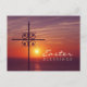 Postal de Pascua de personalizable con una silueta cruzada adornada por cristianos contra una hermosa puesta de sol sobre el mar y saludos personalizados de Pascua. Puedes personalizar esta postal religiosa con tu propio texto.