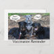 Esta postal dice, "Recordatorio de vacunación" Una postal perfecta para sus necesidades de negocio. Esta tarjeta postal de recordatorio de chequeo se personaliza fácilmente rellenando la parte posterior con toda la información necesaria sobre el cliente y el negocio. La foto de la parte delantera muestra a mis tres hermosos perros posando para que se les tome una foto de su familia mientras les recuerda que recuerden vacunarlos. Sentarnos en el medio es nuestro amable y sonriente Pitbull llamado Sarge. A la izquierda está nuestro muy dulce y gentil Rottweiler llamado Spirit. A la derecha está la feliz y rambótica Heidi que ama retener a su madre (Espíritu) y Sarge dentro y fuera de la casa cuando los llamo.