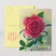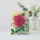 Estas postales de invitación a la boda incluyen una hermosa pintura acuarela, de CherylsArt, de una rosa rosa rosa rosa en flor, con hojas verdes, decorada con una cinta azul. El texto, Nuestro Boda, está impreso en amarillo en la parte delantera, sobre un lavado pálido de verde. En segundo plano, los tonos amarillos claros. En la parte posterior de la postal, los detalles de la invitación están escritos en rosa. Ambos son fáciles de personalizar en los formularios de plantilla.