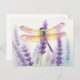 ¡Manden calma, belleza y naturaleza en cada nota! Esta postal de libélula y lavanda presenta un ilustracion acuarela de una delicada libélula que descansa entre los tallos de lavanda florecientes. Con sus brillantes alas en tonos dorados, rosas y violetas contra las suaves flores violetas, el arte captura la belleza de la naturaleza en un suave detalle. Perfecto para los amantes del jardín, la naturaleza y los amantes del arte botánico, esta postal es a la vez una pieza de papelería funcional y un keepsake de colección. Úsalo para notas de agradecimiento, cartas de correo electrónico, invitaciones, o como arte que puedes enmarcar para disfrutar todo el año. Ya sea que se envíe por correo, se regalen o se muestren, esta postal de lavanda y libélula agrega elegancia y tranquilidad a cada mensaje!