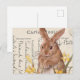 Collage de una antigua postal francesa escrita a mano "postal a la carta" y un antiguo ilustracion de conejo con daffodils de primavera amarilla.
