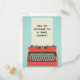 Personalizar estas postales con tu propio mensaje para promocionar el lanzamiento de tu libro conocido, un fiesta con temática literaria o un evento de escritura. Las tarjetas cuentan con una máquina de escribir roja de estilo retro contra un fondo azul acuático claro con espacio para añadir tu propio texto de máquina de escribir al frente de la tarjeta.