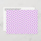 La postal de lavanda de bonito y el patrón geométrico blanco presentan un diseño ornamental original. Los diamantes de Lavender con bordes blancos están rodeados de pequeños crujidos morados que los rodean. Los zigzags blancos separan los sinuosos caminos púrpura pálido y los diamantes de desvío. Imagen creada digitalmente. Copyright © 2013 Claire E. Skinner. Todos Los Derechos Reservados.