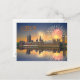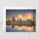 Postal de Londres con una imagen de las celebraciones por fuegos artificiales en las Casas del Parlamento reflejada en el Támesis