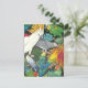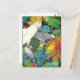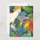 Diseño original de arte fino de loros mascotas coloridos en plantas de Bromeliad por la diseñadora Carolyn McFann de Two Purring Cats Studio en una postal de calidad para los amantes de las aves.