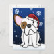 ¡Envíen postales a Navidades de Bulldog franceses a todos sus amigos amantes de los animales este año! Un personalizado de frenchie kawaii blanco y marrón se sienta sobre la nieve recién caída con una gorra de Santa, mientras que los copos de nieve se deslizan suavemente a su alrededor. Hay más colores disponibles.