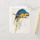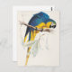 Postal de Edward Lear Blue y Yellow Macaw. Pintura de aceite sobre lienzo del siglo XIX. El pintor naturalista Edward Lear representó cientos de diferentes aves a lo largo de su carrera. Lear es particularmente famoso por sus hermosos ilustraciones de aves tropicales como loros y gallos. Esta pintura de un macao azul y amarillo (Macrocercus Ararauna) es una de las obras más impresionantes de Lear. Presenta el pájaro sentado en una rama agachada con su famosa cara de rayas blancas y negras hacia el espectador. Un regalo de bonito para los amantes de los loros, pinturas naturalistas, ilustraciones de pájaros y arte de la naturaleza.
