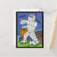 La imagen es de mi dibujo original a lápiz de color. Esta tonta momia está en truco o tratando con su calabaza llena de dulces y se ha encontrado enredado en una cerca de madera. El texto dice Truco o Trato. Vea mi tienda Arte de MAR para encontrar productos que coincidan con este diseño.