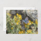 Foto de una mariposa azul de una reakirta sobre flores silvestres amarillas en Tucson Arizona.