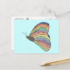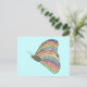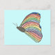 Pintura de una mariposa en los colores del arco iris, en un patrón de mosaico, impreso en postales.