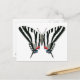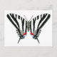 Este diseño de postales presenta mi ilustracion original de una mariposa de cola de cebra. Creo que esta es una de las mariposas más dramáticas de Norteamérica. El contraste de las rayas negras y blancas se ve resaltado por un maravilloso retoño de color en las marcas azules y rojas de sus traseros. Esta hermosa mariposa hace un atractivo y único agregado a esta útil postal.