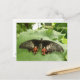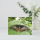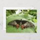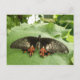 Esta impresionante postal muestra una fotografía de una hermosa mariposa tropical. Esta especie es negra y dorada con parches rojos vívidos en cada ala. La fotografía fue tomada usando macrofotografía para obtener un resultado asombrosamente detallado.