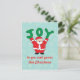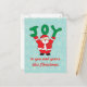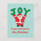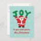 Este diseño presenta un alegre y caprichoso Santa Claus sosteniendo las palabras Alegría encima de él. El fondo es un suave azul invernal con un patrón de copos de nieve.