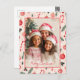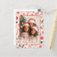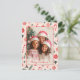 La foto de tu familia o Navidades de amistad se verá tan linda en esta divertida postal de vacaciones que mandas a tus seres queridos para los saludos de esta temporada de invierno. La acuarela vintage presenta adornos baubles de vacaciones rosas y rojas, además de caramelos de caramelo divertidos y ramos de pino verde, con bayas rojas y azucaradas. Todo ello con un fondo de temporada rosa claro. Esta carta animada tiene un toque retro festivo. "Feliz Navidad" es el saludo en escritura rosa a lo largo de la parte inferior de la foto; tenga en cuenta que este texto puede o no aparecer bien en su tarjeta dependiendo del color de la foto que coloque ahí. Si no se muestra a su satisfacción, simplemente elimine el texto. El reverso de la tarjeta postal incluye un dicho similar. Asegúrese de editar el mensaje sugerido a sus propias palabras, y cambie los nombres de familia de ejemplo y el año a lo que quiera allí. También puede eliminar el texto si desea que el lado de correo de la postal esté en blanco para su mensaje manuscrito.