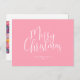 Envíe elegantes saludos de vacaciones con estas postales de Navidades de personalizable rosa, un diseño moderno y mínimo perfecto para Pinkmas. Con "Feliz Navidad" en un guión blanco crujiente sobre un fondo rosa brillante, estas postales de vacaciones personalizadas se revierten a un patrón de borde acuarela para un final festivo. Totalmente personalizado y editable en línea, son ideales como postales de vacaciones de negocios o tarjetas de Navidad personal. Una opción asequible y pensada para la venta, estas postales hacen que sea fácil compartir la alegría de temporada mientras mantiene su mensaje único y profesional. Explore más diseños que coincidan con este tema fiesta único aquí: https://www.zazzle.com/collections/unique_christmas_cards_invitations_wrapping_paper-119501723387216239 Material de arte y diseño acuático único de Victoria Grigaliunas de Do Tell A Belle.