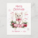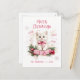 Aquí están los pequeños Navidades más bonitos colgados en un lindo paquete de regalo de vacaciones rosa y diciendo "Miau, Feliz Navidad" a todos. Es para ti, amantes de los gatos. El bonito gatito blanco tiene un bonito arco rosado y la escena incluye baubles rosas y rojos Yuletide y pinos de temporada. Este diseño de acuarela vintage se encuentra en una postal que hará sonreír a los amigos y familiares amantes del mascota que lo reciben. Todo el texto es editable. Asegúrese de cambiar el nombre y la fecha de la familia de ejemplo. Si no prefiere "pros", puede borrarlos o reemplazarlos con otra frase breve, o tal vez el nombre de un destinatario.