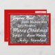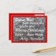 Postal de navidades, foto en blanco y negro del árbol de invierno cubierto de hielo, con "Feliz Navidad" impreso a través de la foto en varios idiomas, estrecho borde de rojo (el color del borde puede ser cambiado) - la espalda es roja y en blanco