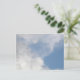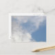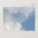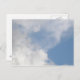 Esta postal muestra una fotografía de una reunión de nubes blancas esponjosas que capturan la belleza y el poder del clima. Las nubes espesas son una mezcla de tonos blancos y grises pálidos que se reflejan en un hermoso cielo azul pálido.