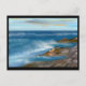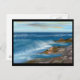 Pintura gráfica de las olas del océano contra las rocas.