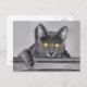 Una fotografía que se ve directamente en la cara de un gato gris con ojos dorados y brillantes. Se edita con colorantes selectivos para enfatizar los ojos hipnotizantes.