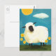 Postal corta para amantes de los animales con una pintura digital de Lisa Marie Robinson. Una oveja blanca esponjosa se alza entre las flores amarillas. El sol brilla por encima y hay una sola nube en el cielo. Derechos reservados © Lisa Marie Robinson. Todos Los Derechos Reservados. Es ilegal usar o duplicar esto, o cualquiera de nuestras imágenes, sin permiso escrito.